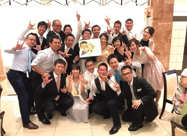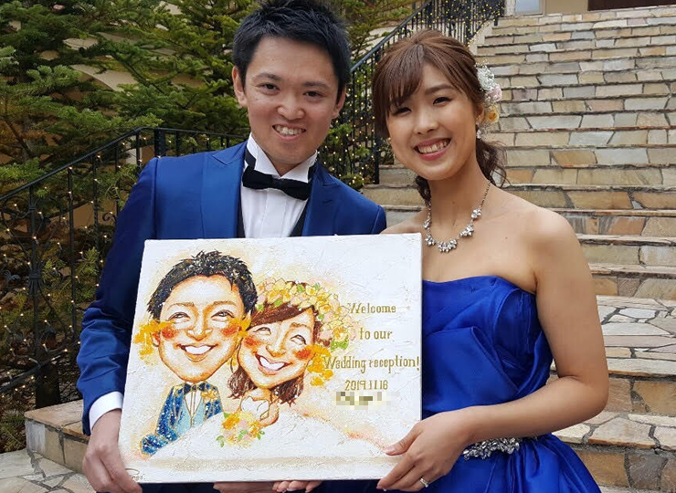 全国で人気の似顔絵作家「りんご」が100%手描きで心を込めて描かせていただく作品は、結婚式の素敵な想い出とともにリビングに飾れるアートとしても大人気です。