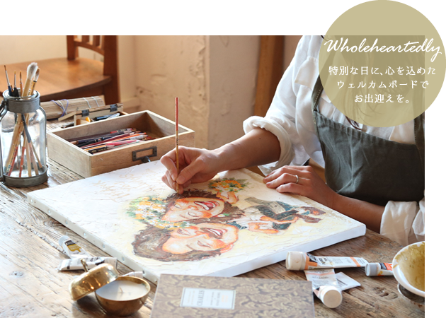 結婚式の当日に新郎新婦に代わって、大切なゲストをお出迎えするヌーボスタイルの似顔絵ウェルカムボード。